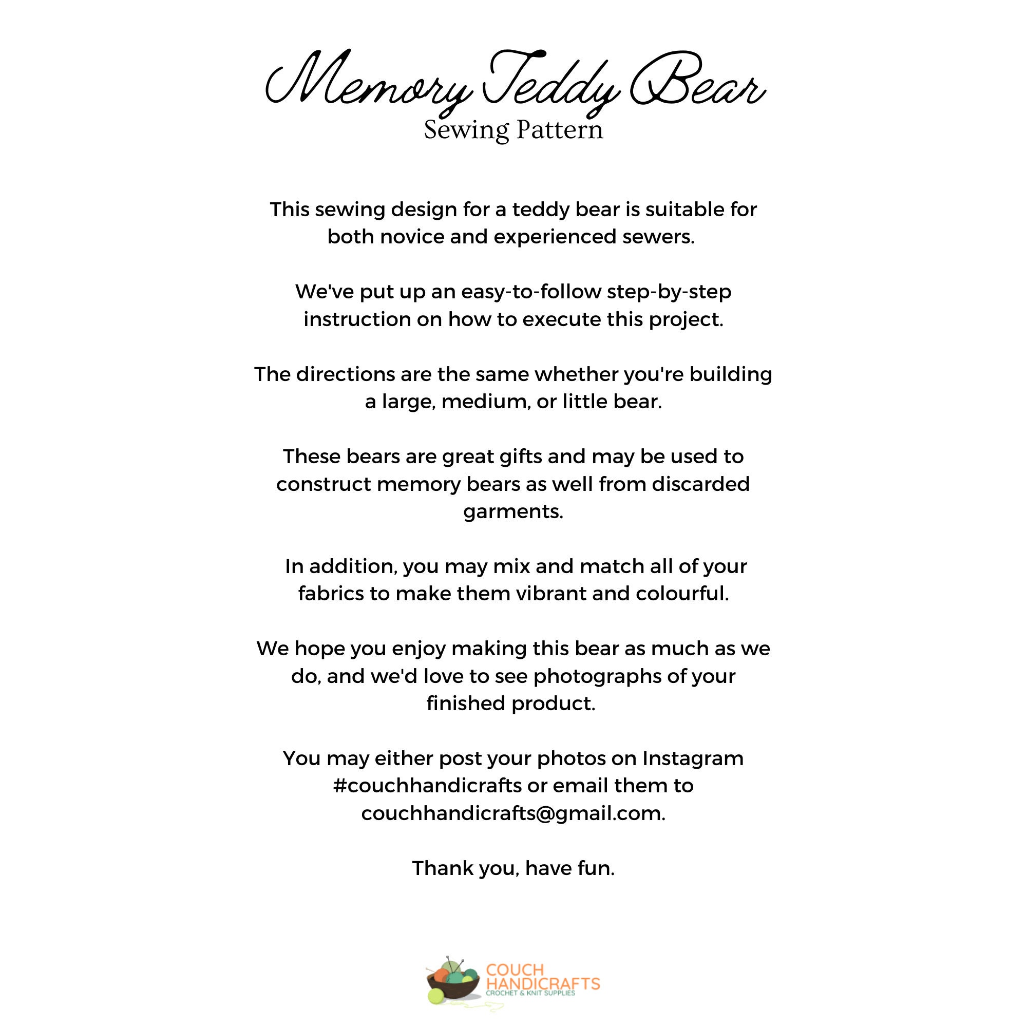 Memory Teddy Bear Sewing Pattern Small Medium And Large With Etsy